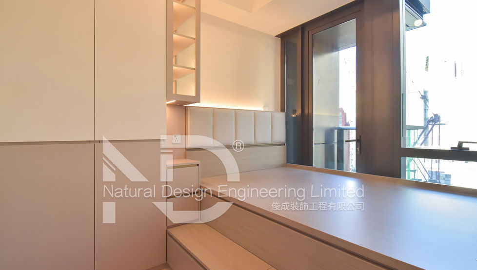 訂製部分傢俬完整起居功能,與新樓盤配備的基礎設施互相配合,最大化節省資源。傢俬的櫃內間隔更能幫助儲物規劃。淺色簡約風設計以純淨的色調和簡潔的線條為主,打造出輕盈、清新的居住空間,也是功能性與美感完美結合。