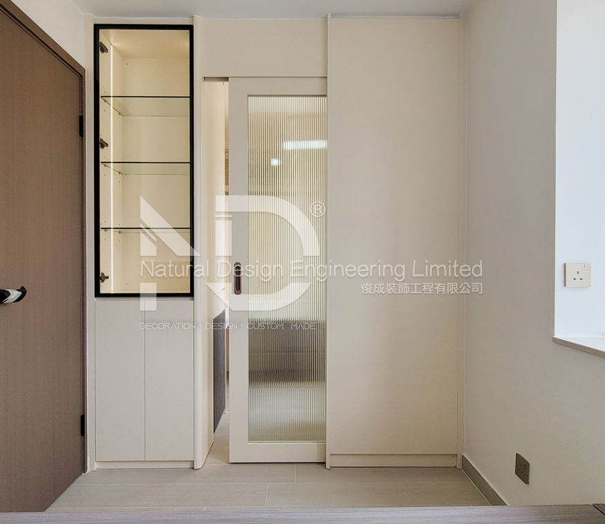呢個門窗式廚房門平時打開咗,空間通透到飛起,煮飯都變得好開揚;關起嚟又可以隔煙隔油,實用又靚仔!仲有埋洗衣機一體設計,細空間都可以整齊又方便~廁所趟掩門呢個設計,真係將空間利用到極致,靈活又慳位, 平時推開唔使擔心阻住,入邊仲做咗干湿分離,啲瓷磚同鏡櫃設計都好有質感!