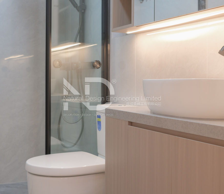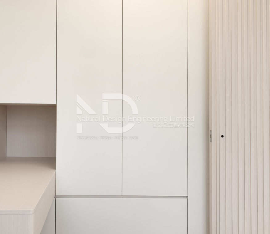 成間屋用米白 + 淺木色做主調,暖笠笠好有親切感,視覺上仲好開揚,細單位都唔怕焗促。物料方面,木紋板夠晒自然,加埋啲啞面漆面,仲有啲豎紋裝飾板做點綴,簡約之中又有細節~